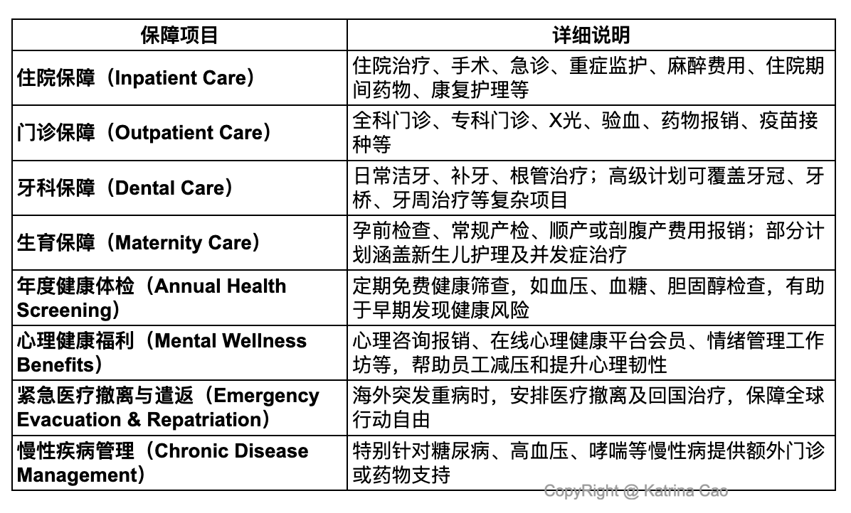新加坡团体医疗保险一般包含哪些保障内容?