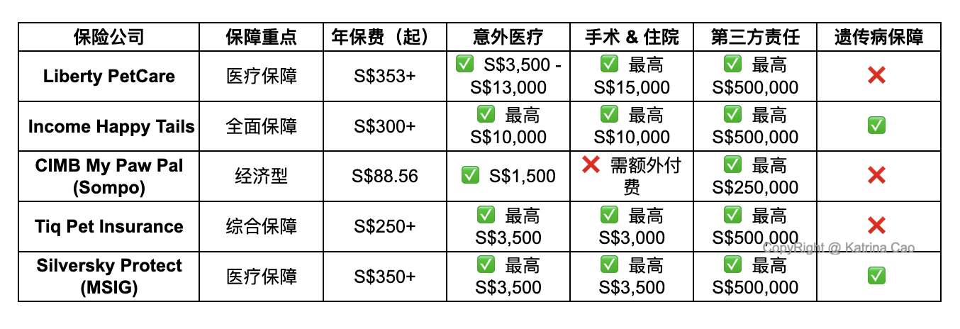 目前,新加坡有5家主要提供狗狗 & 猫咪保险的公司: